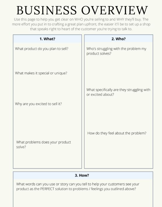 more effort you put in to crafting a great plan upfront, the easier it’ll be to set up a shop